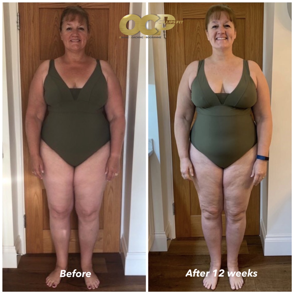 By the end of the 12 week programme Tracy lost 2 stone (12.7 kg) and 10.5 inches (27 cm) off her body...
